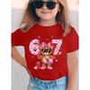 Children's Cute Girl T-Shirt Cartoon Bear Digital 67 Print Fashion Round Neck Short Sleeve Top Clothing Gift Children's Clothing