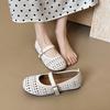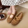 Round head soft sole shallow mouth single shoes new one-word buckle breathable hollow flat bottom low heel Mary Jane shoes comfortable shoes