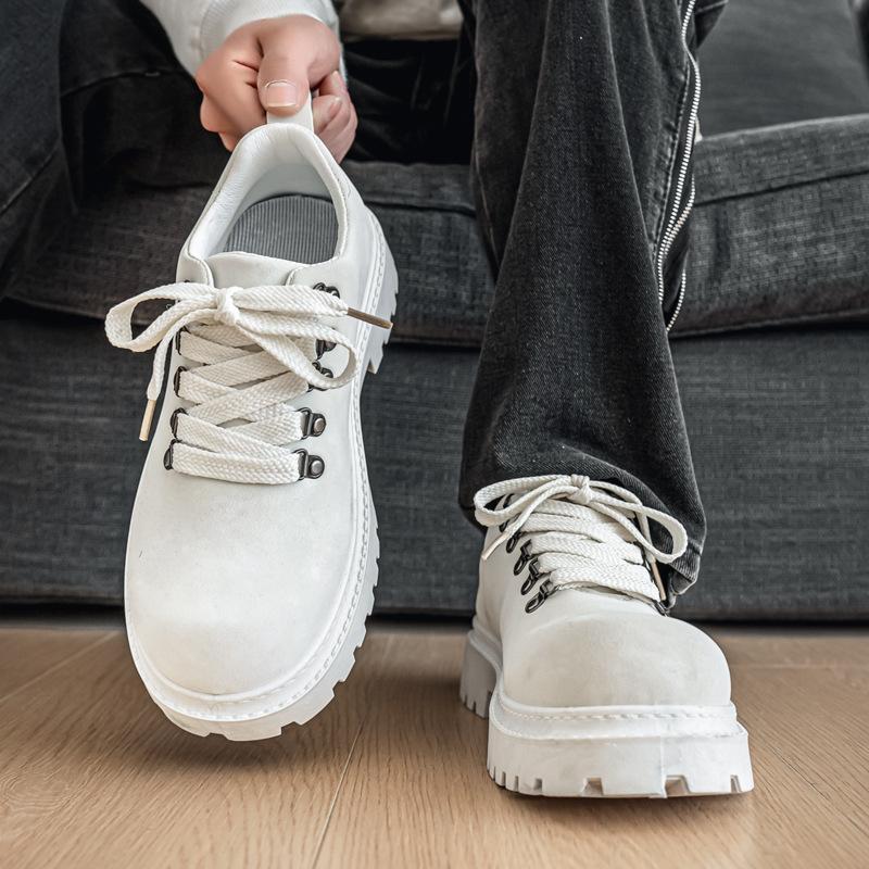 Shoes autumn breathable premium sense retro casual leather shoes sports thick sole heightening black big head derby shoes