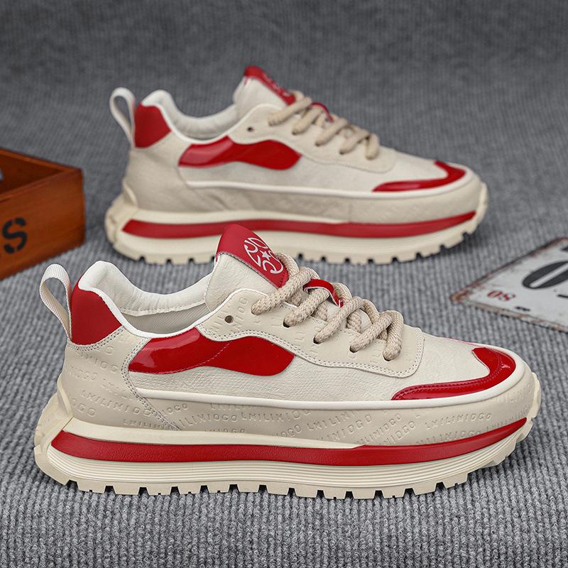 Color matching dad shoes autumn and winter new comfortable leather surface heightening retro casual