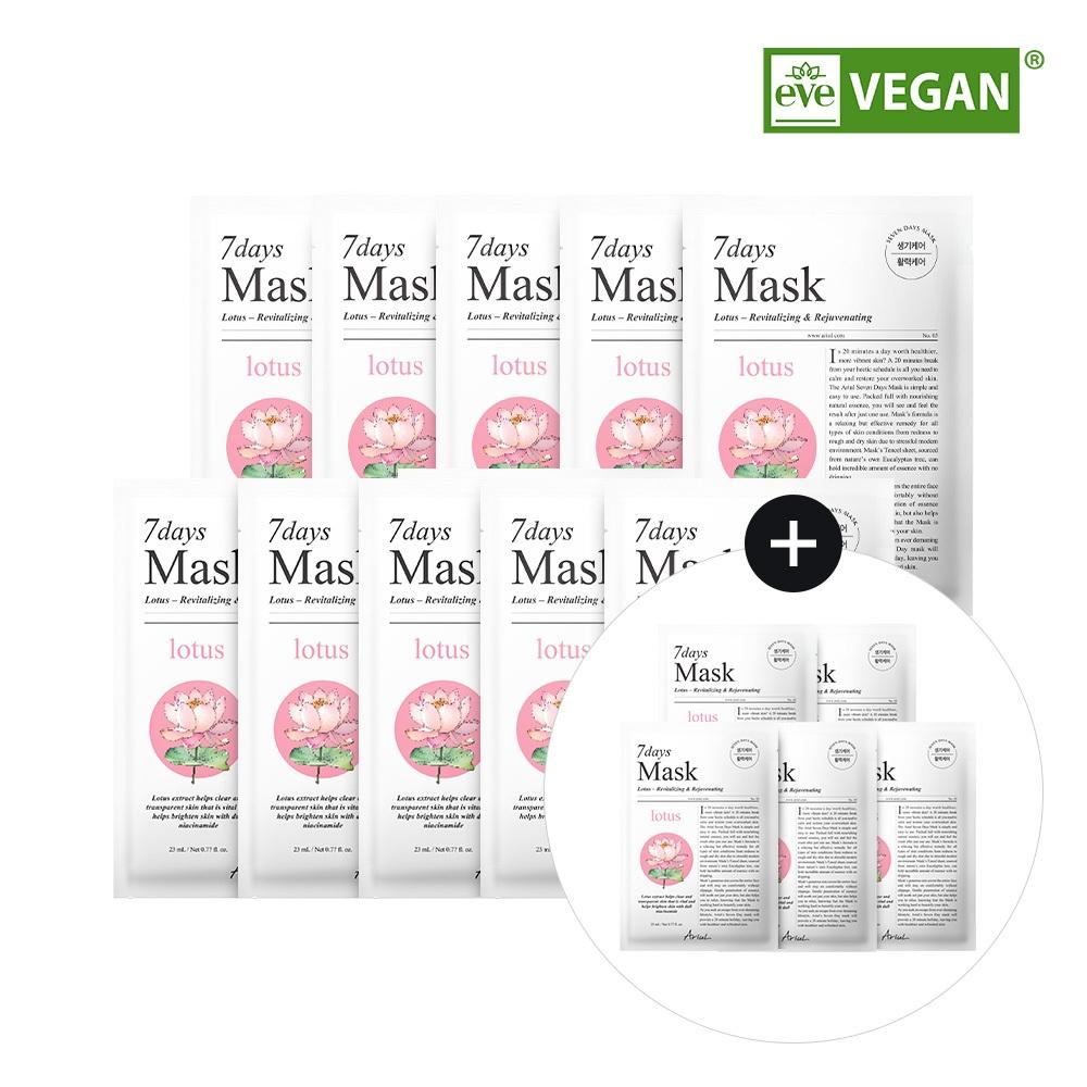Ariul Seven Days Mask Lotus N 10+5 Pack is a sheet mask suitable for all skin types, infused with lotus extract. It provides moisture and improves skin conditions during use, making it ideal for daily routines. Specifically, it helps to unveil hidden transparency and cultivate a vibrant complexion.