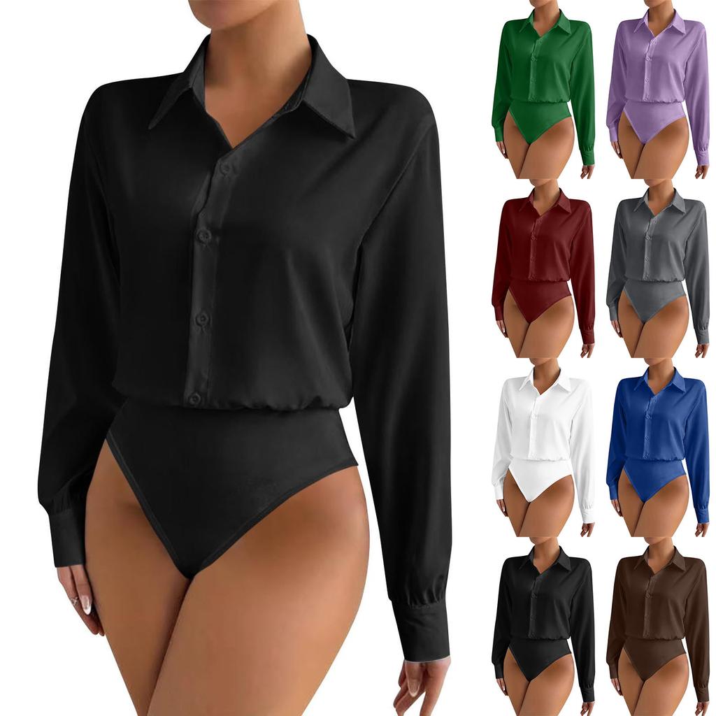 Tuta Elegante da Donna a Due Pezzi, Camicia Botton-Up a Manica Lunga, Oversize