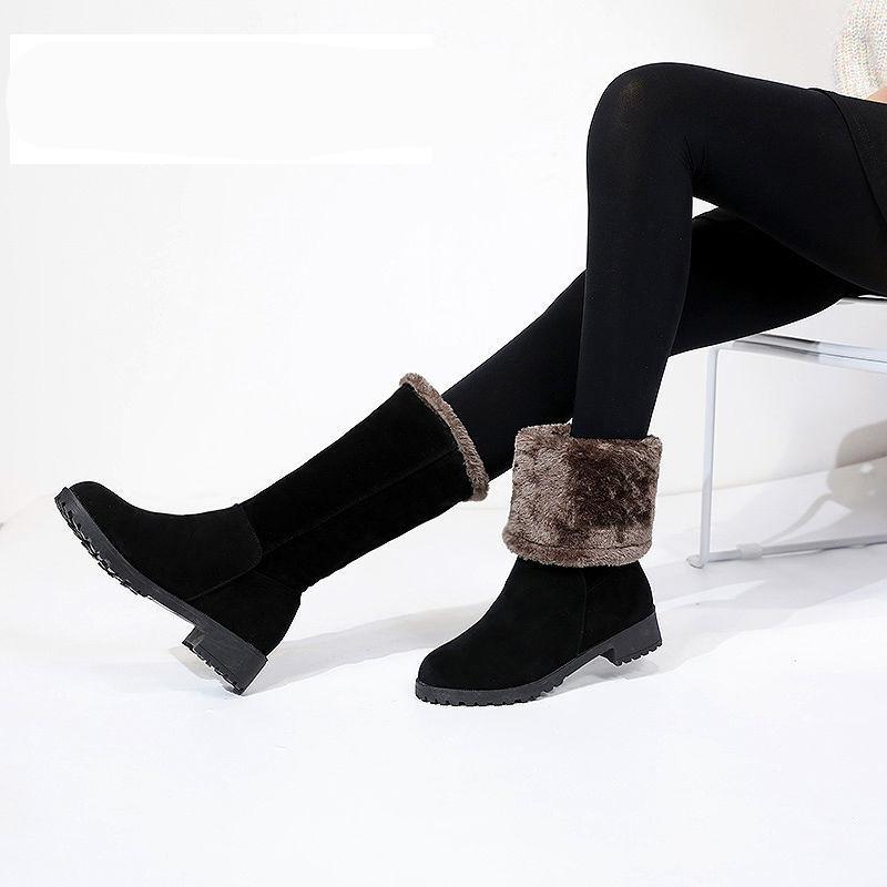 High Boots Snow Boots Women's Thickened New Fashion All-match Plus Velvet Cotton Boots Women's Mid-heel Boots