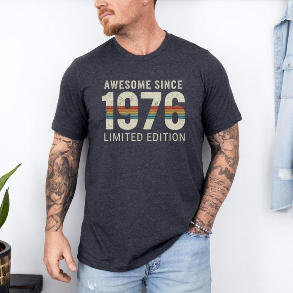 Awesome Retro Since 1976 50th Birthday Summer TShirt Vintage 1976 Cotton TShirt Birthday Gift for Women and Men Men Clothing