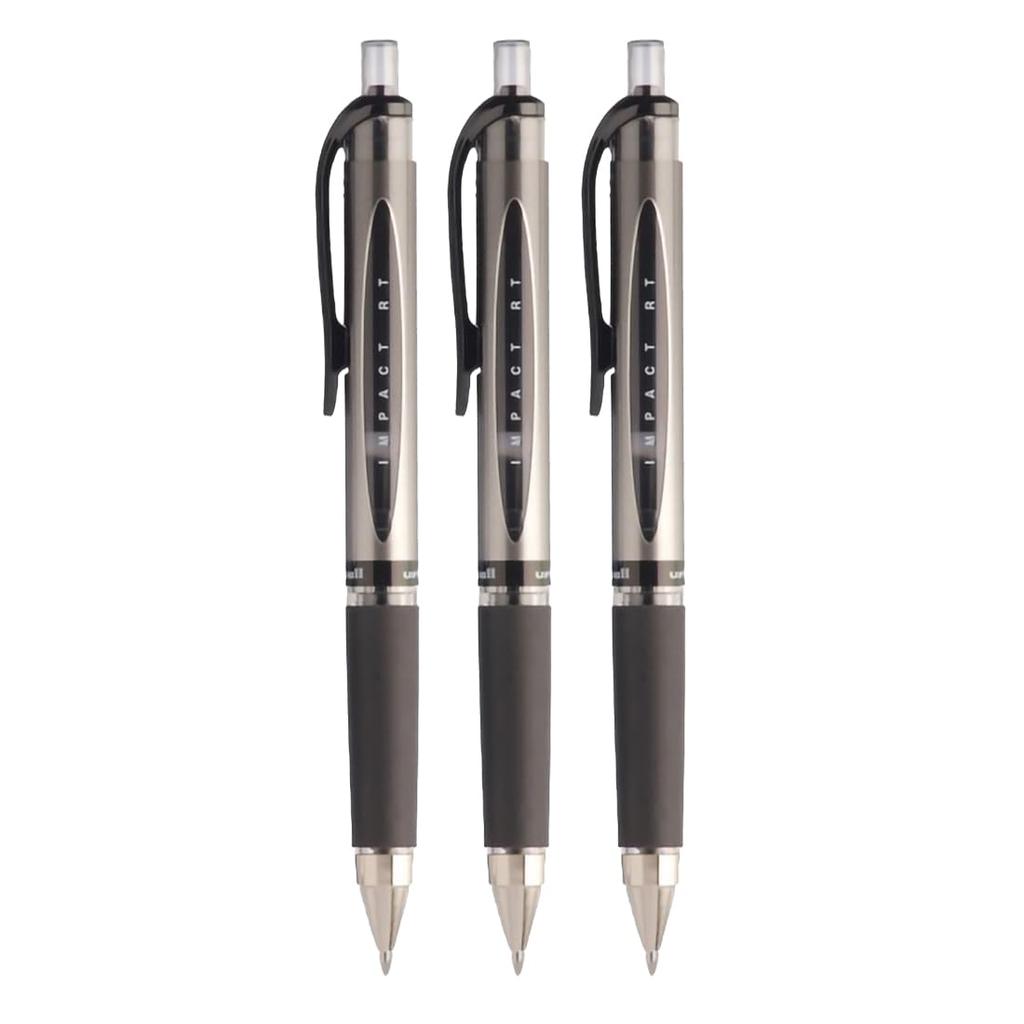 Uni-ball Gel Impact RT UMN-152S 1.0mm Retractable Rollerball Pen Black Ink Pack of 3 for Office Home & School