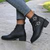 Ladies And Winter Solid Color Versatile Chunky Heel Large Belt Low Barrel Short Boots Women Boots Low Heel