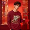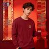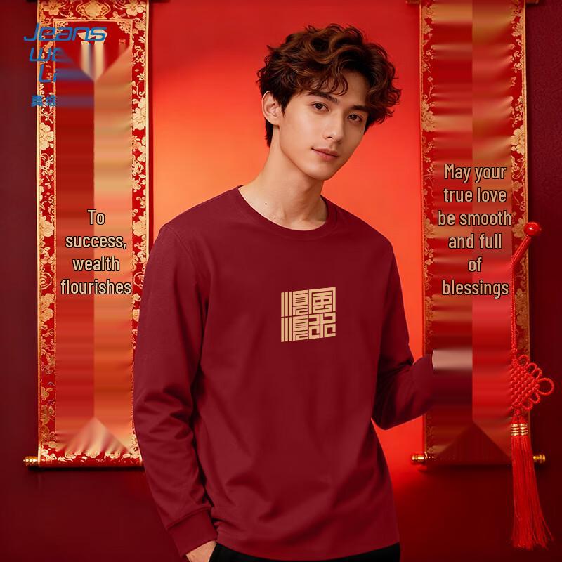 Jeanswest Men's Wine Red Cotton Lunar New Year Long Sleeve T-Shirt