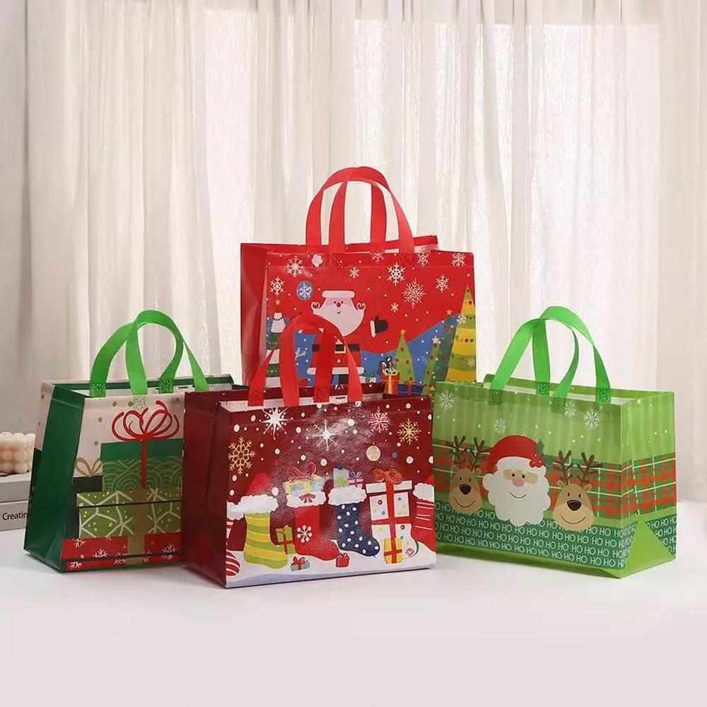 4pcs Christmas Gift Packaging Bags Non-woven Fabric Snack Candy Tote Bags Party Decoration Gift Bags