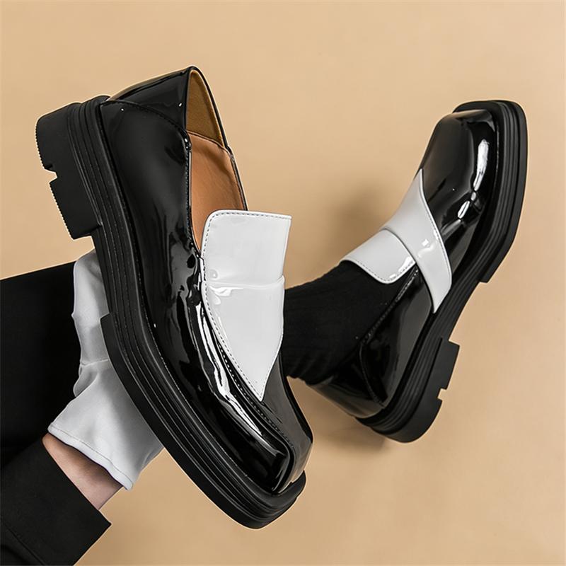 Trend Designer New Men's Black White Mixed Slip on Casual Leather Shoes Male Elevator Loafers Wedding Dress Formal Footwear