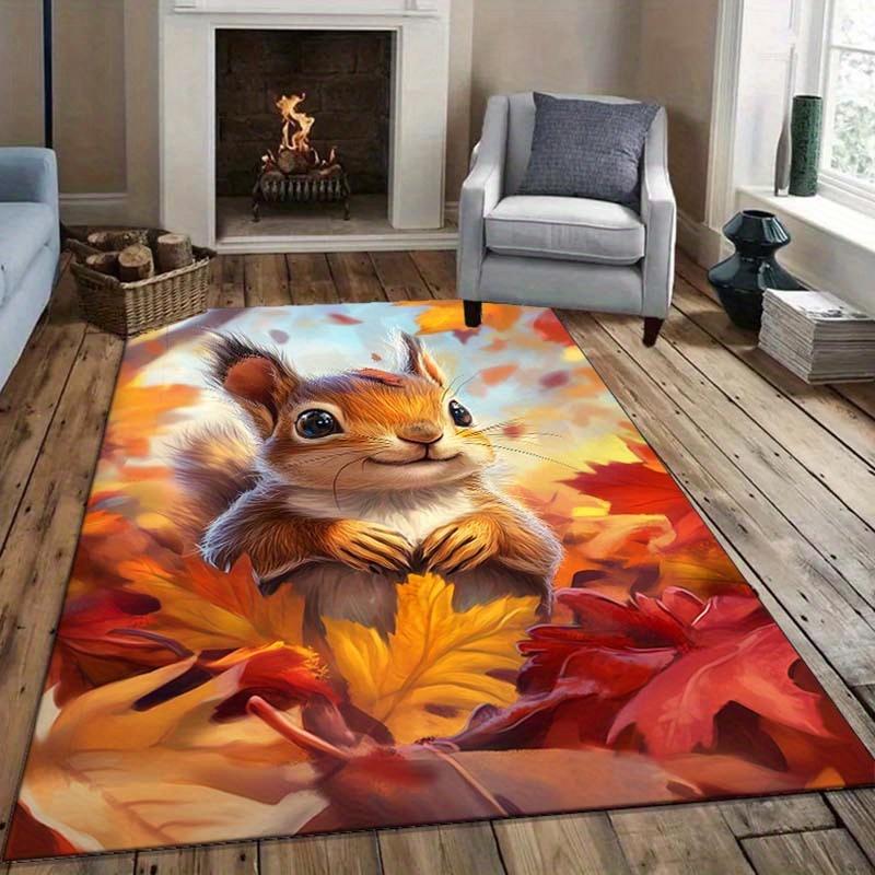 Autumn Squirrel Rug for Cozy Living Spaces - Fall Themed Carpets, Warm Home Decor, Seasonal Interior Design Ideas
