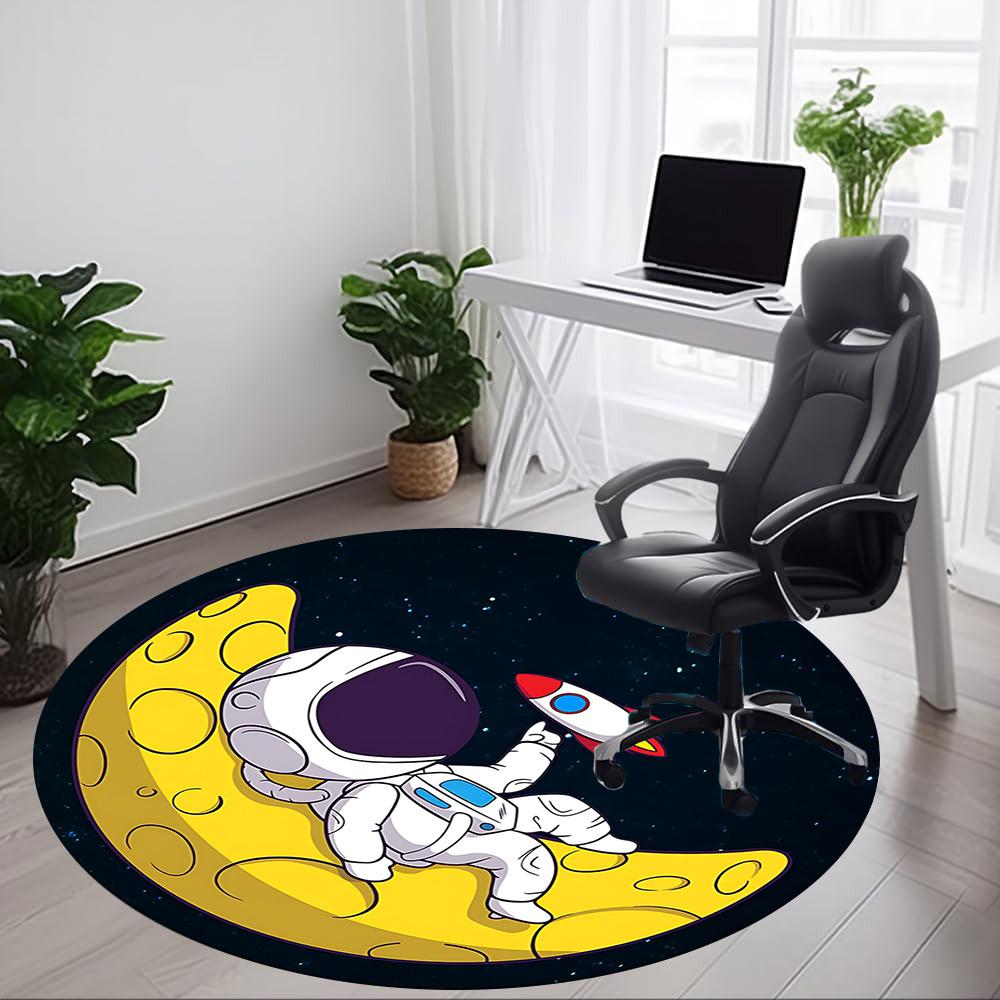 1pc Moon Astronaut Office Round Area Rug, Under Office Chairs Bedroom Living Room Home Decor, Room Deco