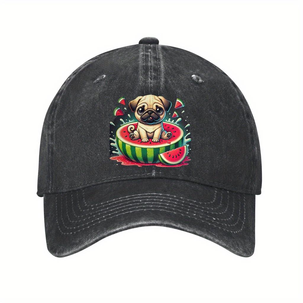 Pug Eating Watermelon Graphic Baseball Cap Cotton Casual Adjustable Sun Protection Unisex Hat
