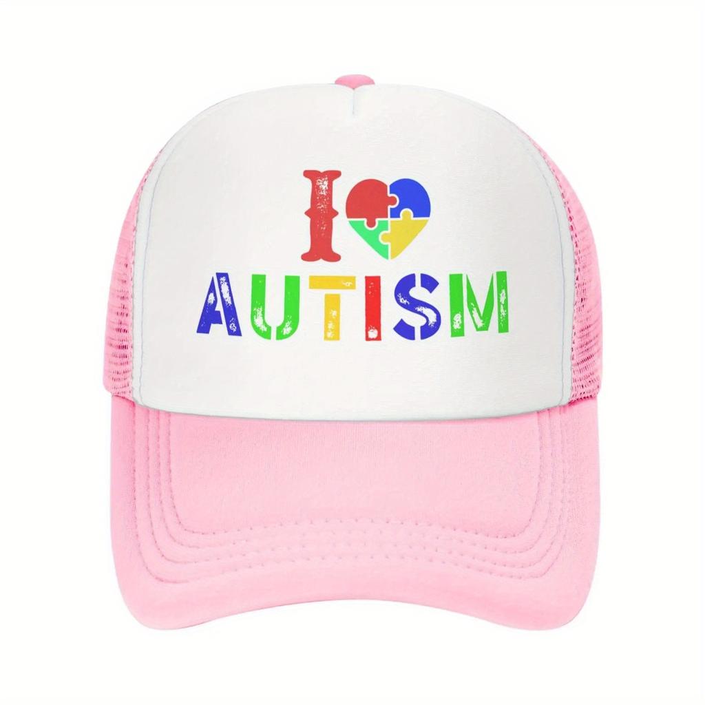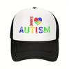 Autism Awareness Puzzle Heart Trucker Hat Adjustable Polyester Mesh Baseball Cap Casual Unisex