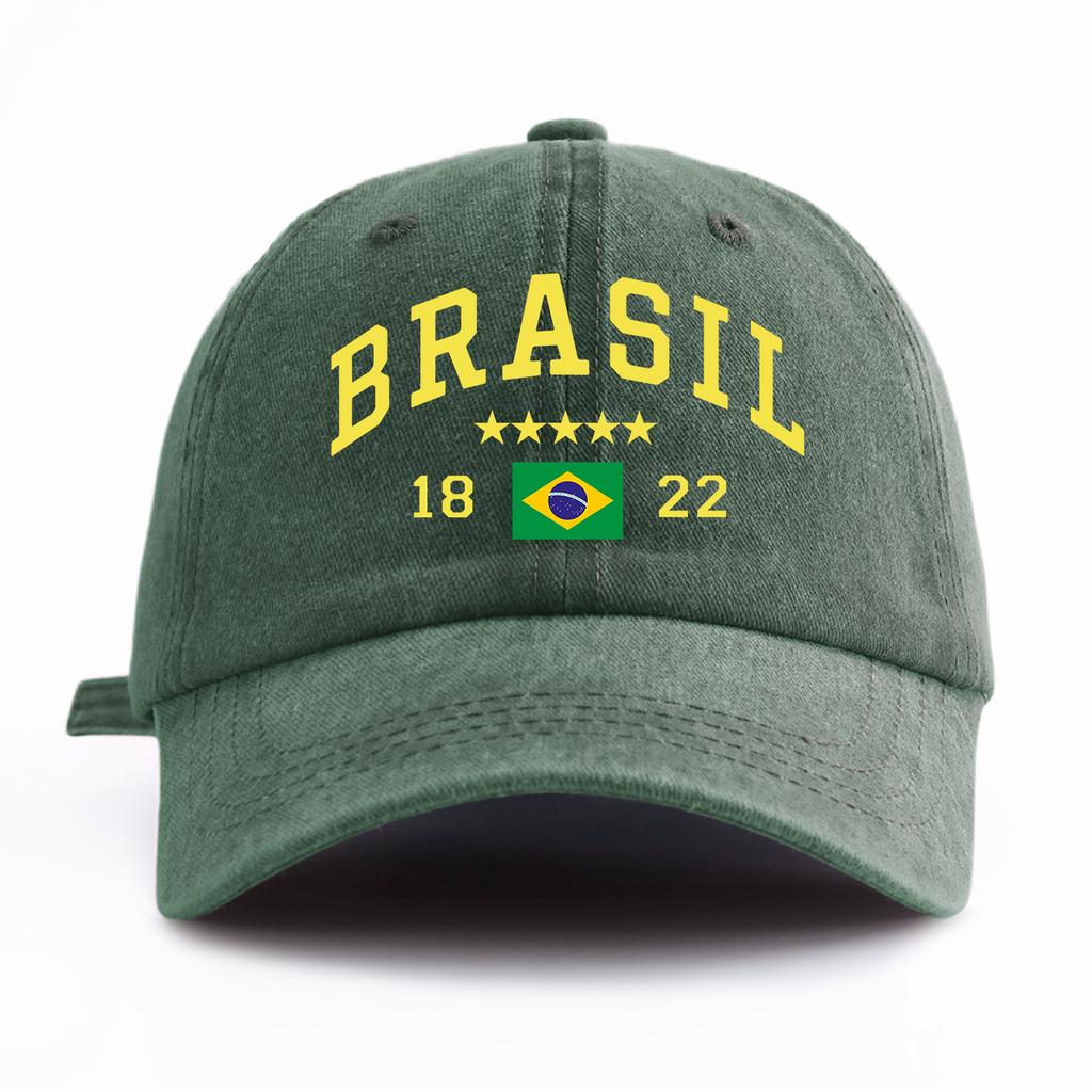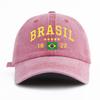 1pc BRASIL Print Washed Baseball Cap for AdultsMinimalist Retro Style Casual Soft Adjustable Dad HatPerfect As Gift