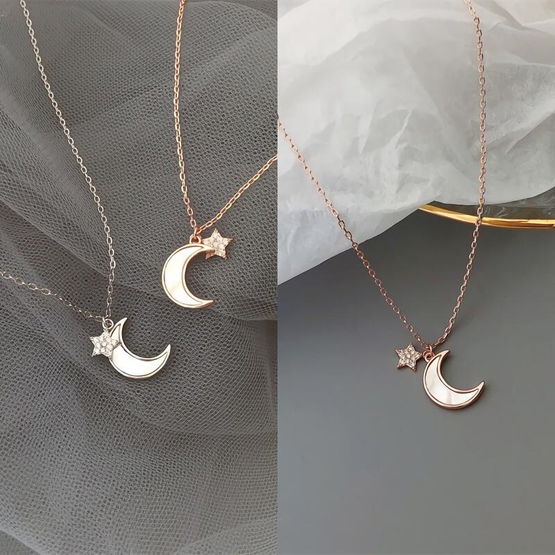 Women's S925 Silver Rose Mother-of-Pearl Star Moon Necklace