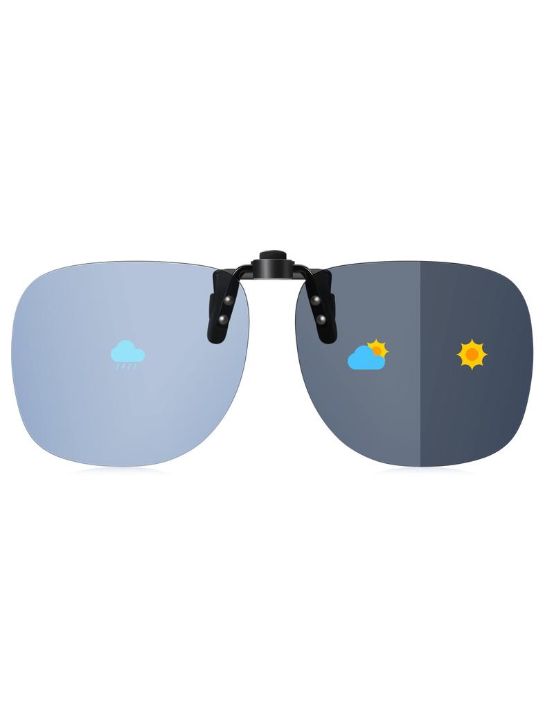These clip-on sunglasses feature the latest photochromic technology. All four colors automatically adjust their shade in response to UV rays, ensuring optimal visibility at all times. The five-layer lens construction features polarization and UV400 protection, blocking 99% of harmful UV rays. The ultra-lightweight design, weighing just 8.9g, makes them comfortable to wear for extended periods, and the 180-degree flip-up function allows for smooth transitions between indoor and outdoor use. The special rubber clip protects glasses up to 131mm wide and 51mm tall, ensuring a secure fit. Light brown is perfect for business and long-distance driving, light pink is perfect for everyday use and women, light blue is perfect for summer and outdoor activities, and yellow has enhanced nighttime visibility, making it ideal for day and night driving and driving in the rain. A comprehensive set of accessories is included, including a dedicated hard case, polarization test card, cleaning cloth, and eyeglasses pouch. These versatile sunglasses are perfect for a wide range of activities, including driving, fishing, golf, and cycling.