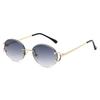 Trendy Pink Rimless Sunglasses For Women Summer UV400 Protection Oval Fashion Designer Shades Women Sun Glasses