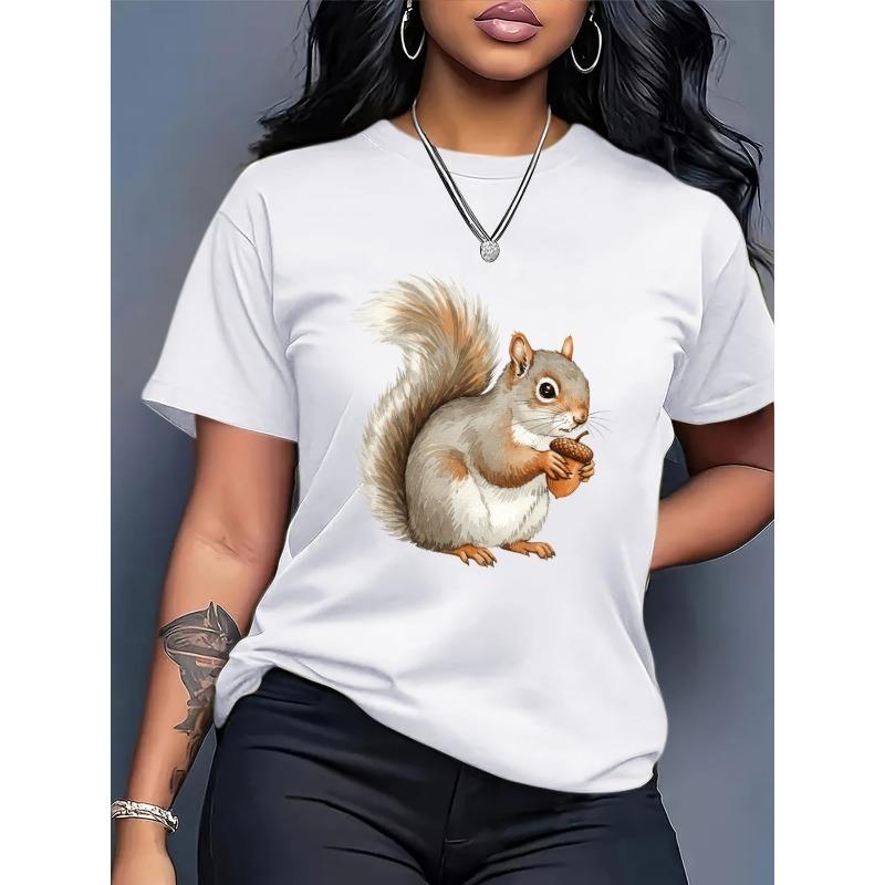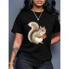 European Size Women's Oversized T-Shirt - Vintage Squirrel Graphic&Geometric Print Black/White Casual Streetwear Top,Loose Fit Round Neck Short Sleeve