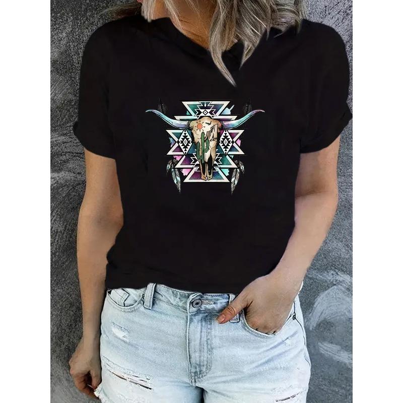 Women Black White Bee Floral Print T-Shirt Short Sleeve Vibrant Beehive Design All-Season Casual Animal Pattern Summer Top