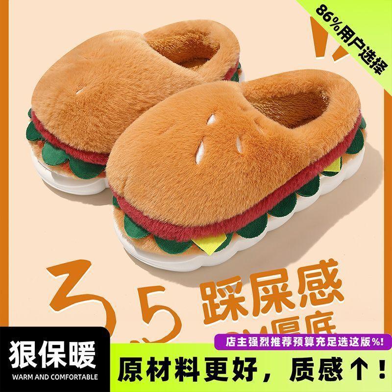Cartoon burger cotton shoes winter new cute outer wear warm home non-slip piled thick soft bottom cotton mop