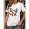 European Size Women's Rhinestone Bow & Leopard Print Short-Sleeve T-Shirt - Sparkling Top with Round Neck, Soft Blouse for Spring Summer Fall Parties