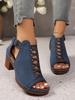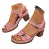 Summer new thick heel high heel Roman fish mouth hollow large size buckle sandals