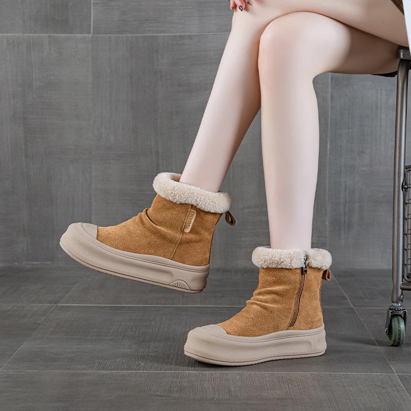 Leather high-top cotton shoes winter new thickened warm velvet medium tube socks snow boots