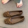 Square head leopard print single shoes autumn year French bow with skirt ballet evening shoes
