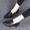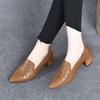 Soft leather medium heel single shoes spring and autumn new pointed commuting embossed thick heel deep mouth leather shoes
