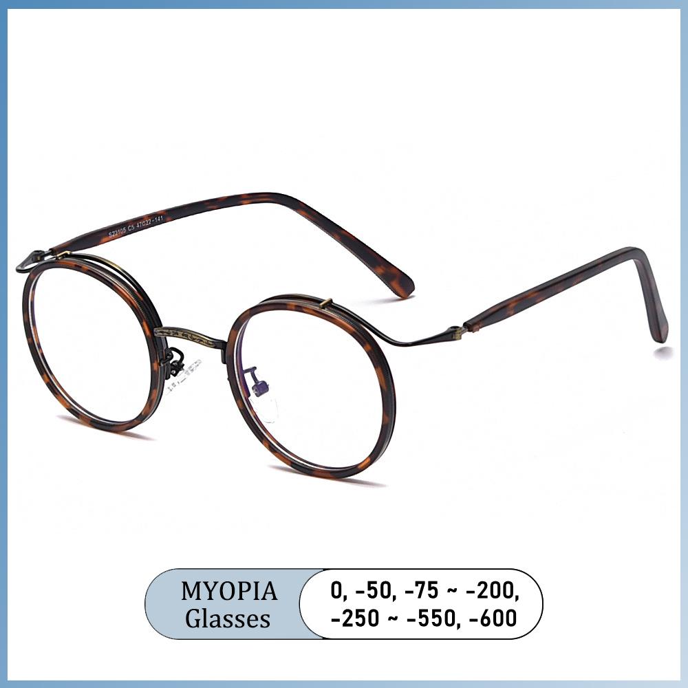 New Fashion Luxury Round Alloy Frame Myopia Glasses Anti Blue Light Men Near Sight Eyeglass Prescription
