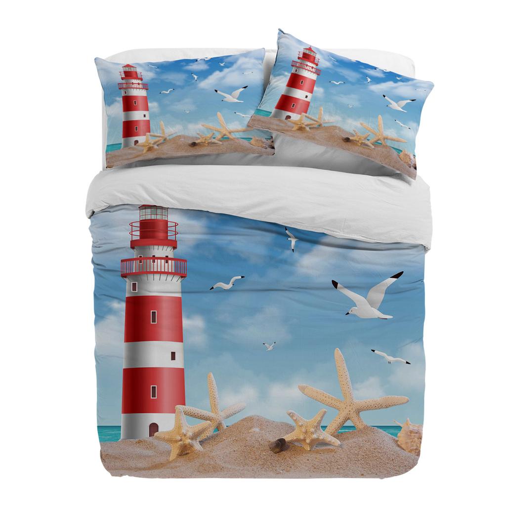Sea Beach Lighthouse Starfish Seagull Duvet Cover With Pillow Case Custom 3pcs Bedding Set Quilt Cover Double Bed Home Textile