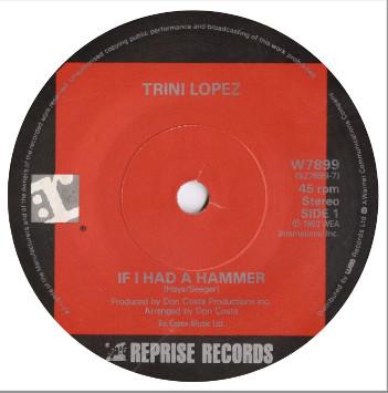 7inch Record TRINI LOPEZ If I Had A Hammer W7899 Reprise Records 1980 UK Rock Used