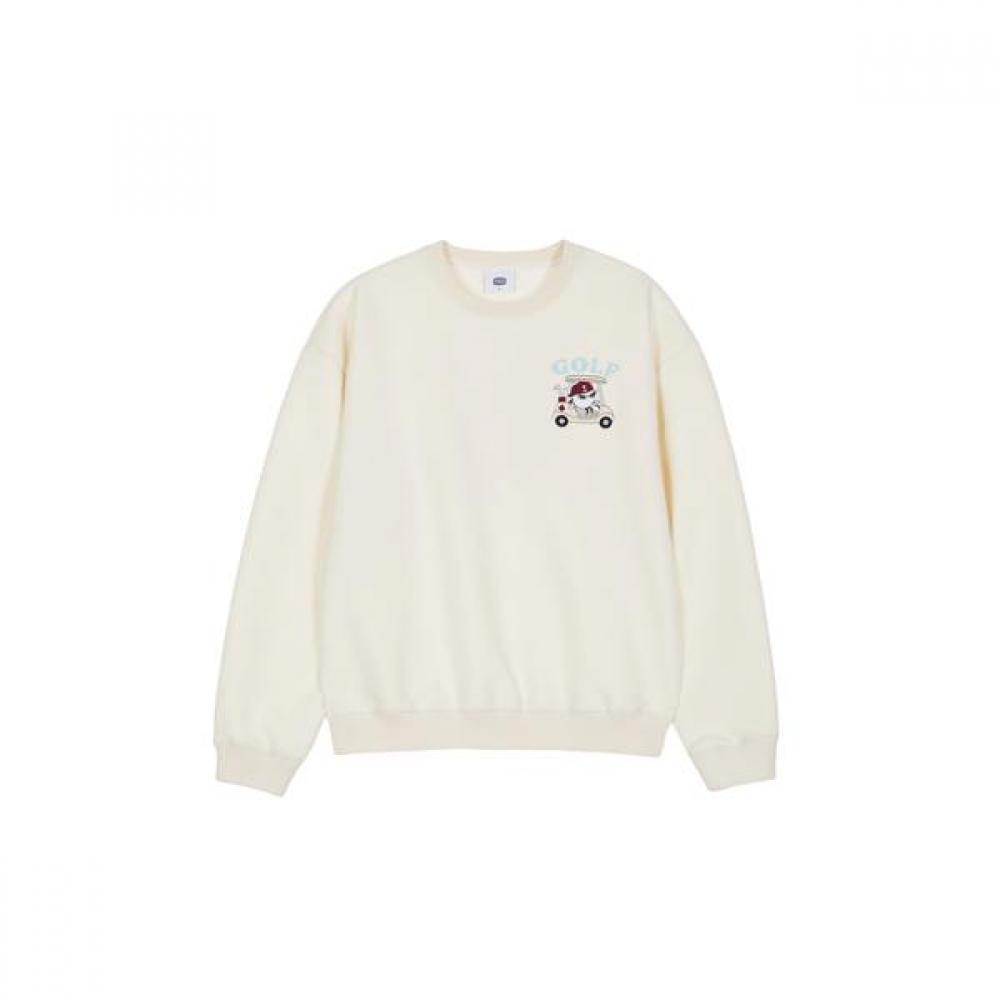 The SWAG CART Crew Neck Men’s Sweatshirt in Cream is a long-sleeve golf shirt for men, offering a relaxed basic fit suitable for golf activities. The front features character embroidery detail that adds a design point. Made from thick cotton and polyester blend material, it provides stability and comfort during wear. A ribbed finish prevents sagging for long-lasting use.