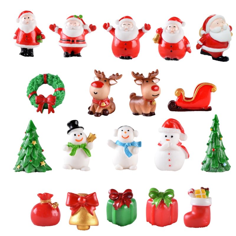 19-Piece Christmas Miniature Figurine Ornament Set: Boots, Wreath, Santa Claus, Bell, and Snowman. Resin Craft Supplies for Potted Plants, Gardening,