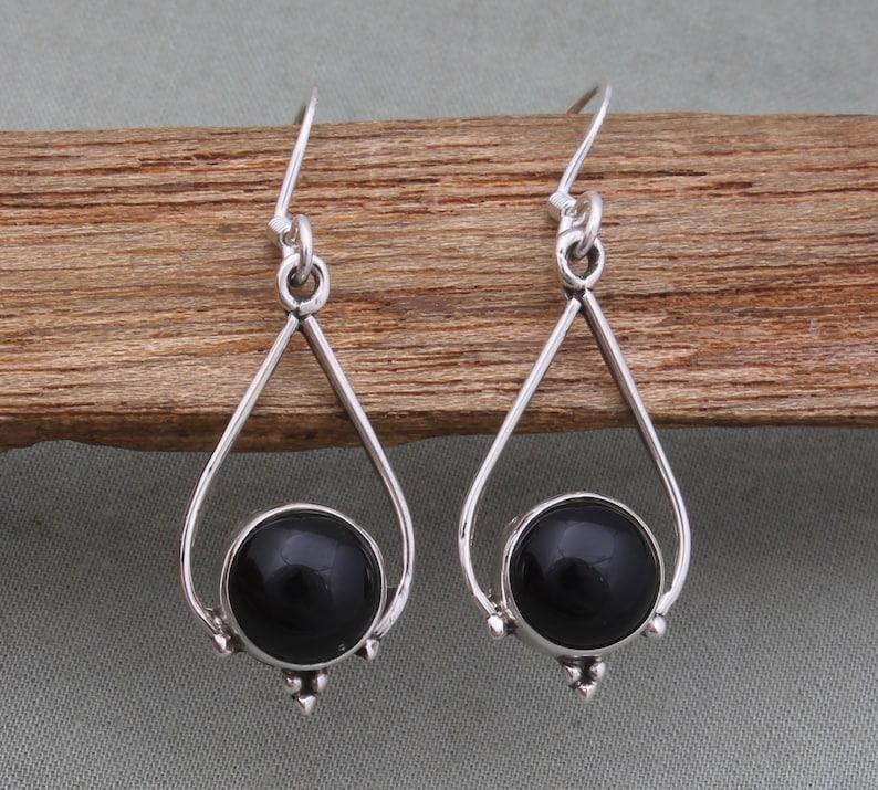 Solid 925 Sterling Silver Black Onyx Gemstone Women Dangle Earrings Long Earrings Gift For Sister