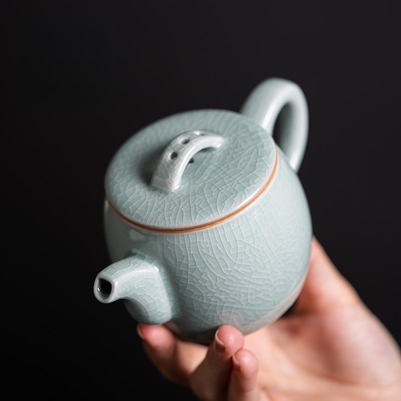 Powder Green Ru Kiln Teapot Single Pot High-grade Bright Glaze Ru Porcelain Retro Household Ceramic Kung Fu Tea Set