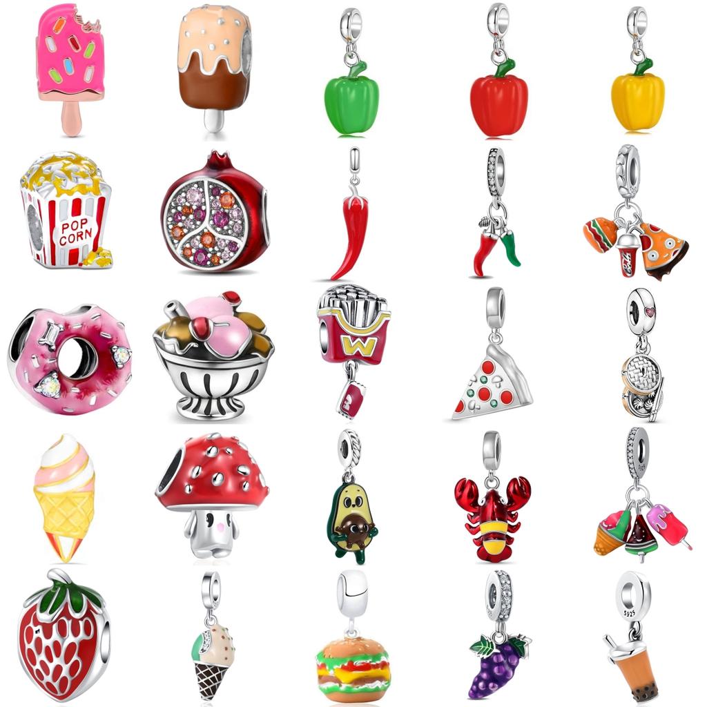 Hot Sales Pepper Ice Cream Pizza Grape Charm Fit Original Bracelet Accessory 925 Silver DIY Women Jewelry Gift Pendant Amulet