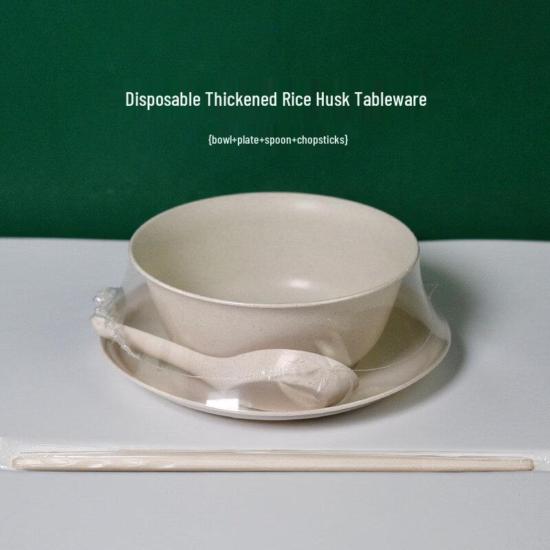 Outdoor Rice Husk Disposable Dinnerware Set with Conical Bowl