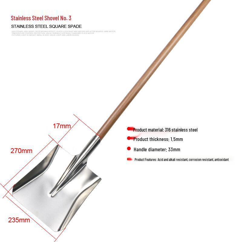 NaiDuo 316 Stainless Steel Shovel with Wood Handle