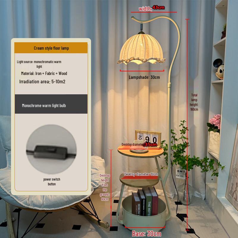 OEING Cream Style Floor Lamp with Integrated Side Table