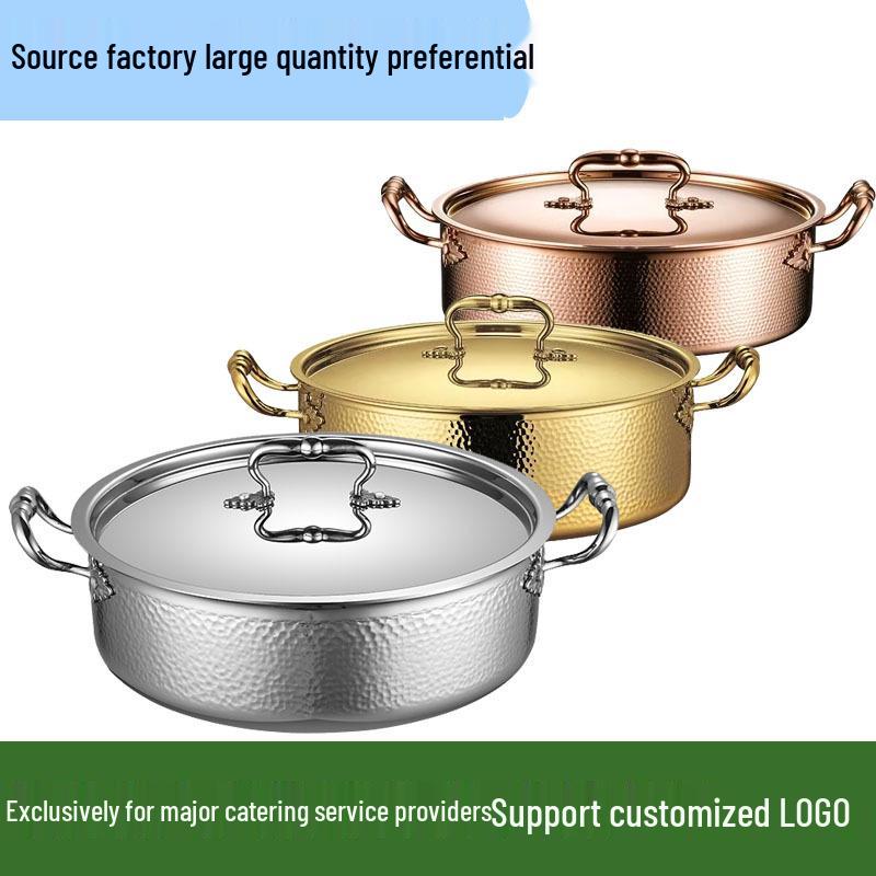 Golden Maple Leaf 304 Stainless Steel Hot Pot with Lid, Hammer Pattern, Three-Layer, Large Capacity, Universal Design, Clear Soup Divider.