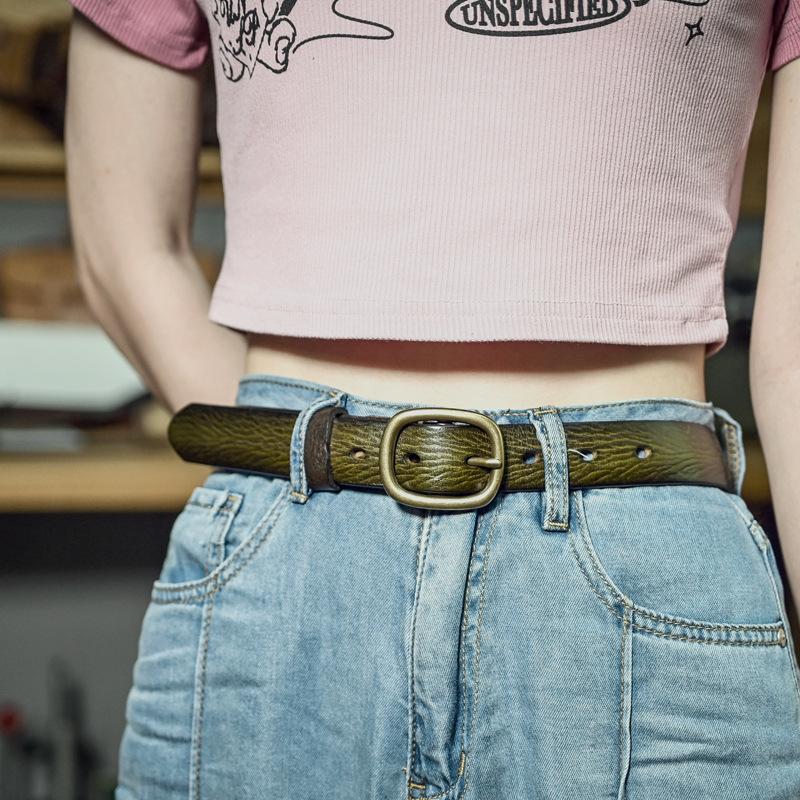 Belt retro copper button head belt new belt width simple versatile pin buckle belt hand-polished