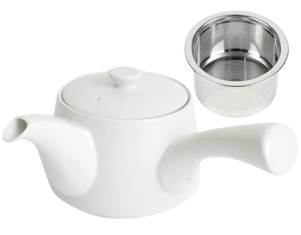 Washable Kyusu (Kitsuko Teapot) - Unsui Style, 380ml, Arita Ware, Made in Japan, with Tea Strainer, Tea Leaf-Free, Stylish, White, Simple, Modern, for