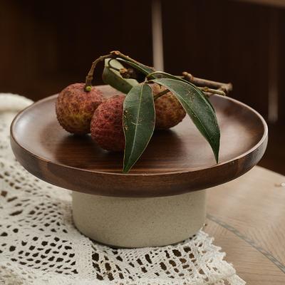 Piatto da Frutta in Ceramica Simplicity Vintage Piatto Creativo in Legno ad Alto Piede per Snack Piatto Espositore per Torte da Tè Pomeridiano Prodotti per la Casa