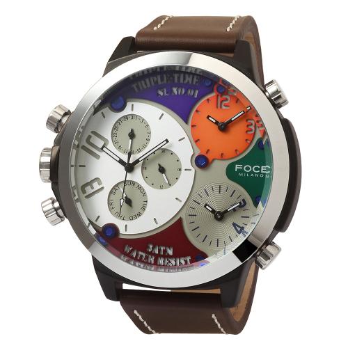 [FOCE] FOCE 55mm Men's Big Dial Three-Time Metal Watch FM7745L-WI