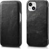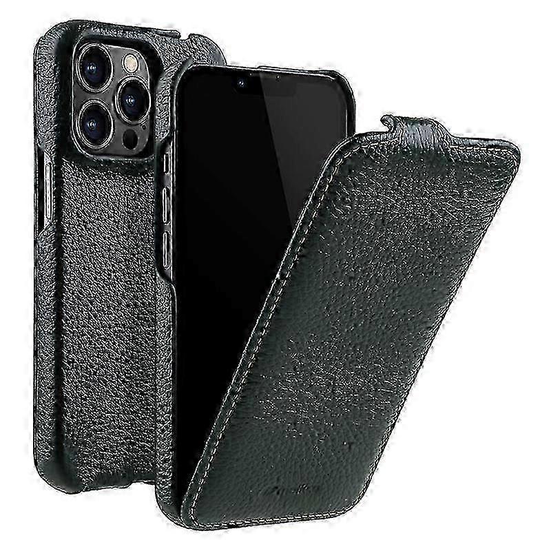 For iPhone 14 Pro Litchi Texture Phone Case Genuine Cow Leather PC Vertical Flip Cover