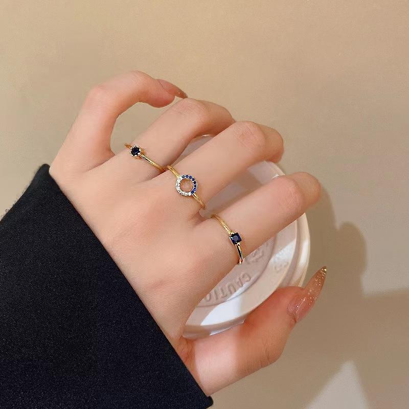 Niche Temperament Retro Blue Zircon Ring Women'S Simple High-End Stacked Three-Piece Open Ring
