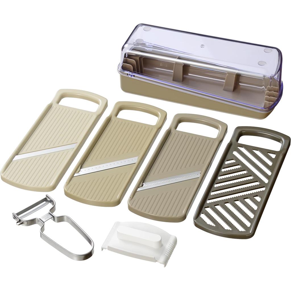 Wahei Freiz Stainless Steel Peeler Set with Safety Mott Plus 4-Piece Multi-Slicer & Guard, ME-7774