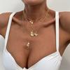 Ocean Wind Metal Conch Shell Collarbone Necklace, Imitation Pearl Seahorse Turtle Stacked Necklace