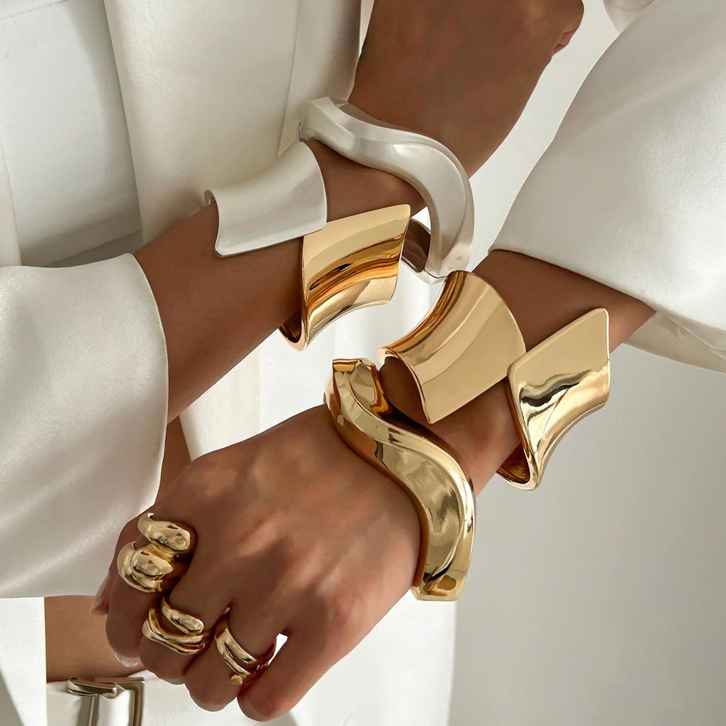 Fashion Geometric Metal Glossy Spring Bracelet Bracelet Design Sense Irregular Wave Opening Bracelet